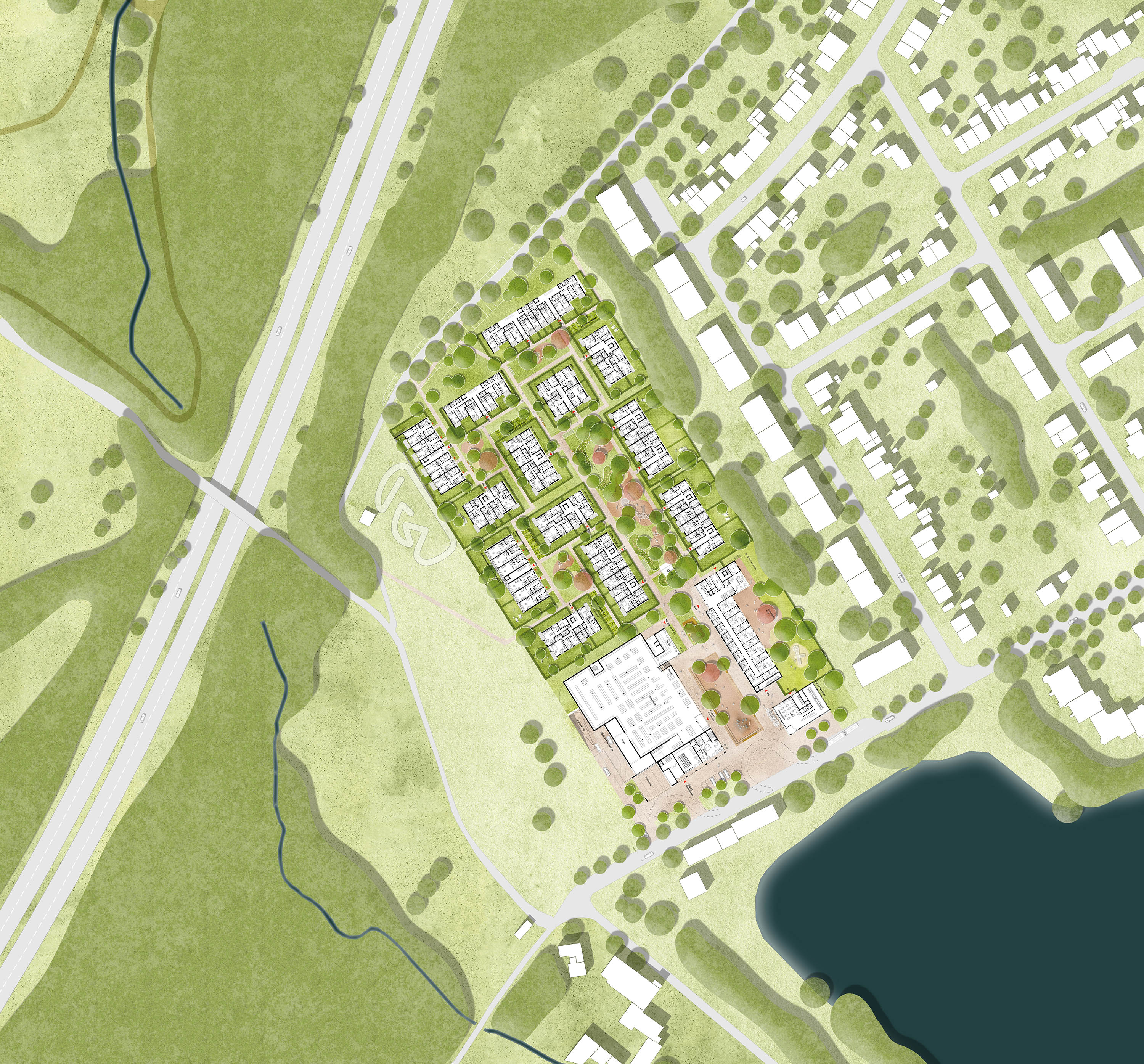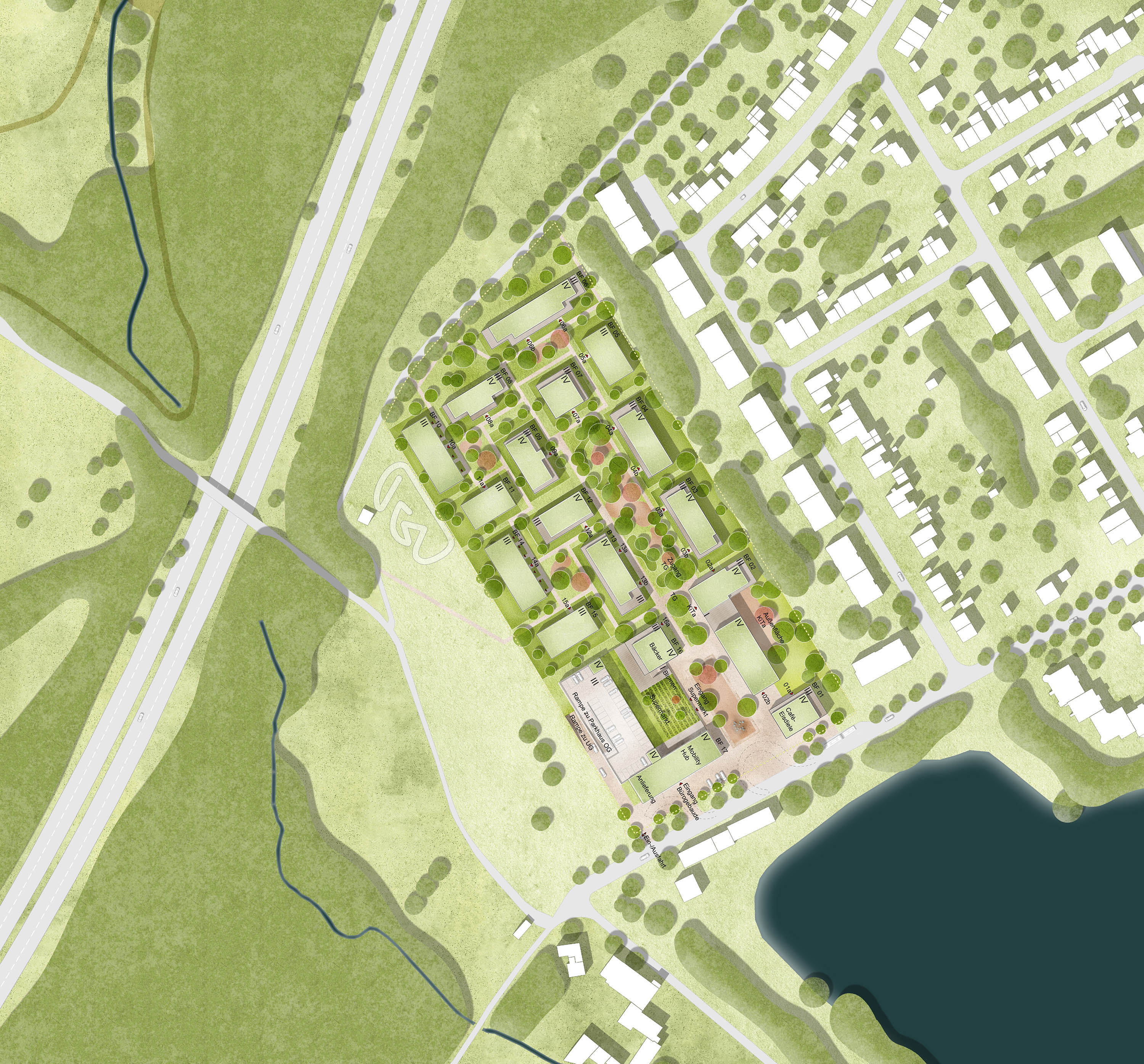 Molestina Architekten + Stadtplaner in Zusammenarbeit mit studio grüngrau Landschaftsarchitektur gewinnen Wettbewerb zur Gestaltung des Neubaugebietes
