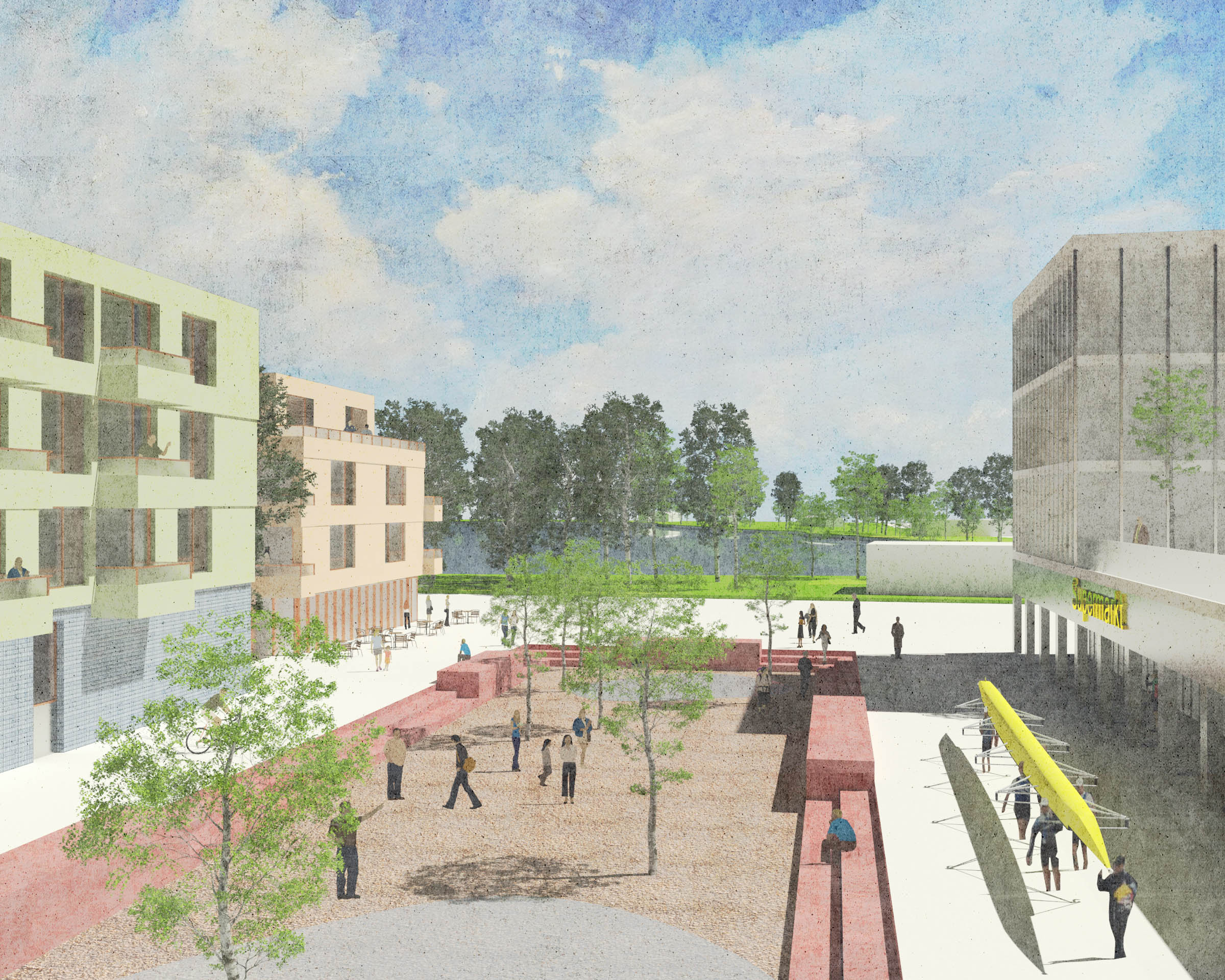 - Siegerentwurf von Molestina Architekten + Stadtplaner in Zusammenarbeit mit studio grüngrau Landschaftsarchitektur setzt sich gegen sieben weitere teilnehmenden Architekturbüros aus ganz Deutschland durch